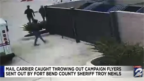 HOUSTON – Fort Bend County Sheriff Troy Nehls says an unidentified postal worker threw away a bundle of his campaign mailers fliers Friday.