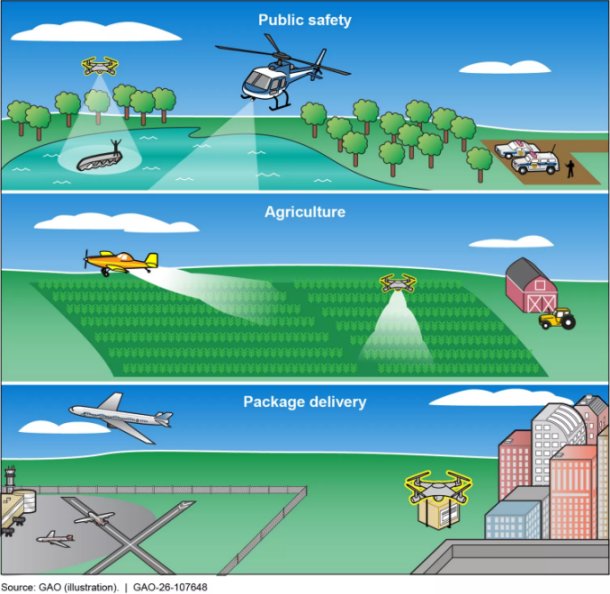 As commercial drone use increases, FAA is working with private industry to study drone traffic management and improve safety. For example, in North Texas, retailers are working with drone delivery companies and using some detect-and-avoid technologies to enable package deliveries. As they do, they are also collecting data to inform future commercial operations. These technologies may help reduce risks of midair collisions when operating drones beyond line-of-sight.