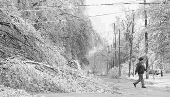 Icy Delivery Postal service letter carrier Alice Mays passed an icy, fallen tree on her appointed rounds Thursday in Muskogee, Okla. Another snowstorm is expected to hit today. AP |